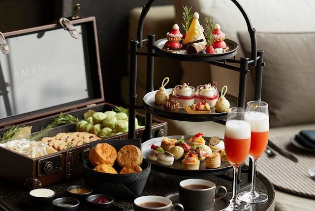 「ザ・ラウンジ by アマン」は、東京上空、アマン東京の33階にあり、東京のパノラマビューを楽しみながら優雅なアフタヌーンティーを楽しむことができます。