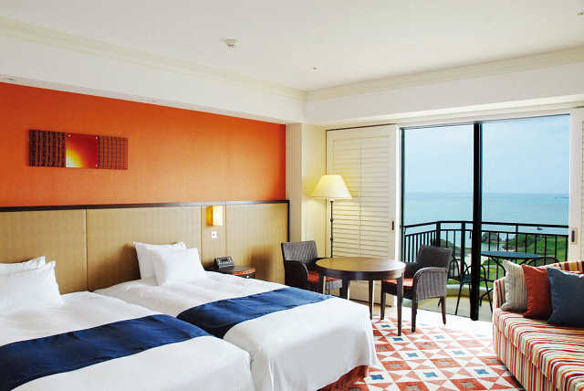 また、お部屋は全室オーシャンビュー。全部で10種類のレストランから食事の場所を選べるなど、ゆっくり滞在するのにもおすすめのリゾートホテルです。