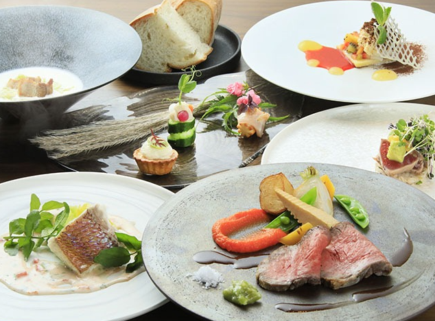 ディナーでは、和の要素を取り入れた南フランス料理を提供しています。コースはスタンダード、ワンランク上のプレミアム、品数が1品少ないライトの3種類。石窯で仕上げられるメインは、肉・魚・ジビエなどから選んで楽しめます♪