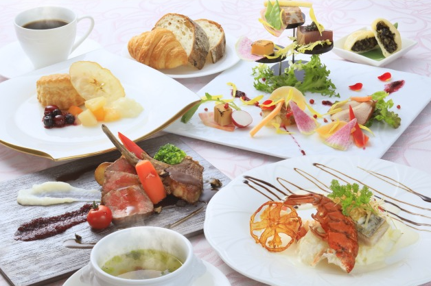 ディナーでは、創作フレンチを提供。冷製料理・スープ・デザート・パンはビュッフェ台から自由に取れ、メインは出来立てがテーブルに届けられるハーフビュッフェ形式で提供されています。見た目も味も申し分なしの絶品ばかりですよ♡