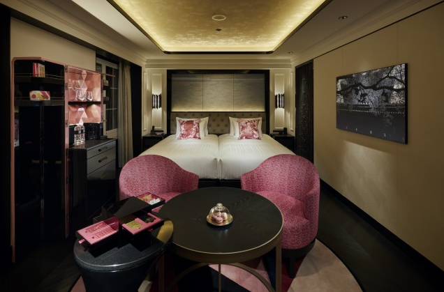 フランスの美食ブランド「FAUCHON」が運営する「フォションホテル京都」。内装に鮮やかなフォションピンクを使用したゴージャスなホテルです。
