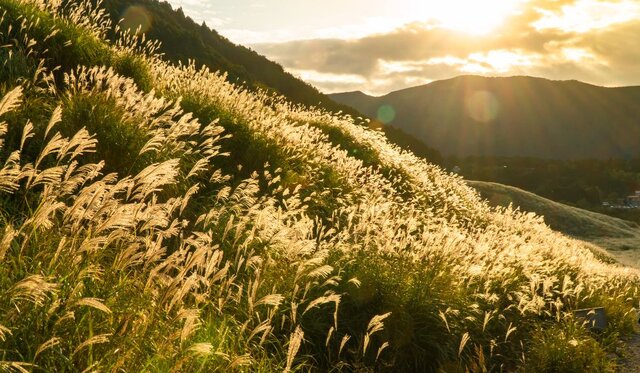 ベストシーズンは9月下旬~11月上旬で、訪れる時期によって異なる表情を楽しめるのが魅力。初秋は穂と緑のコントラストが美しく、晩秋は黄金色の穂が光を浴びて煌めく様子が印象的です。見渡す限り広がるススキの世界に圧倒されること間違いなし♡