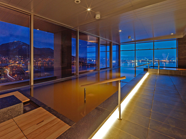 最上階にはベイエリアを一望出来る道南最大規模の天空露天風呂を完備。
