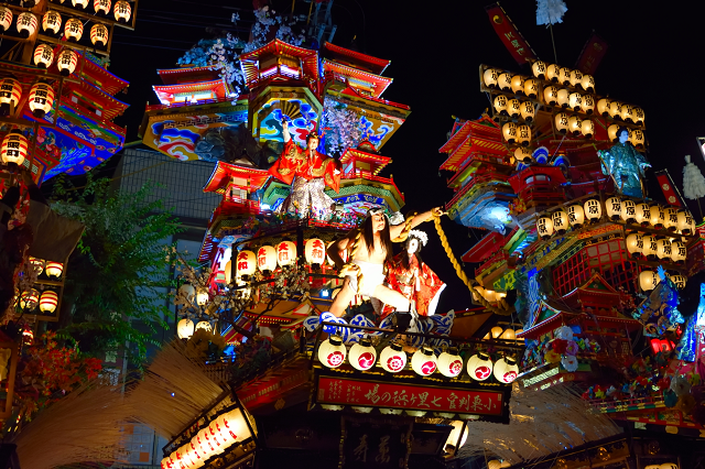 夜には提灯を飾り付けた優雅な晩山の巡行が行われます。
