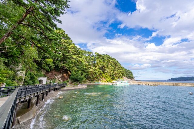 東西約15km、日本海の荒波により侵食されて誕生したリアス式海岸。日本の白砂青松百選に認定されており、かつての文豪も大絶賛したといわれるほどの美しさです。