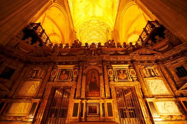 コロンブスの墓があることで知られていますが、一番のおすすめは、約3トンもの金で作られた世界最大の木製祭壇。高さ20m、幅13mもある巨大な衝立には、キリストや聖母マリアの生涯が壮大に描かれています。その優美な姿には言葉を失ってしまうほど。
