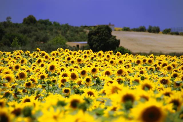 アンダルシア地方では、毎年6月ごろになるとひまわりが見頃を迎え、満開に咲き誇ります。見渡す限り一面に広がる黄色い世界は、日本では見ることの出来ないほどの圧倒的なスケール。