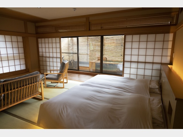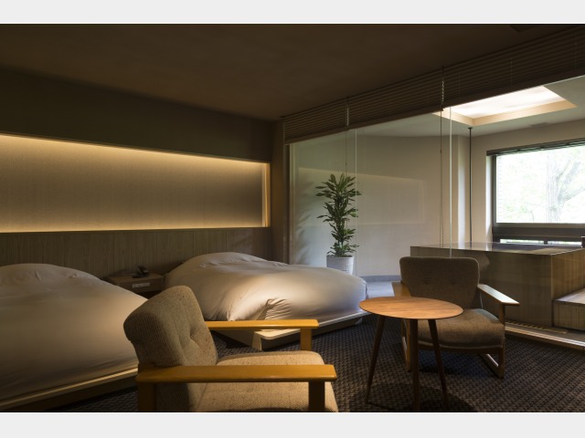 【檜内風呂&サウナ付特別客室(122平米)】ツインベッドはご宿泊人数によって3台にセパレート可能です。