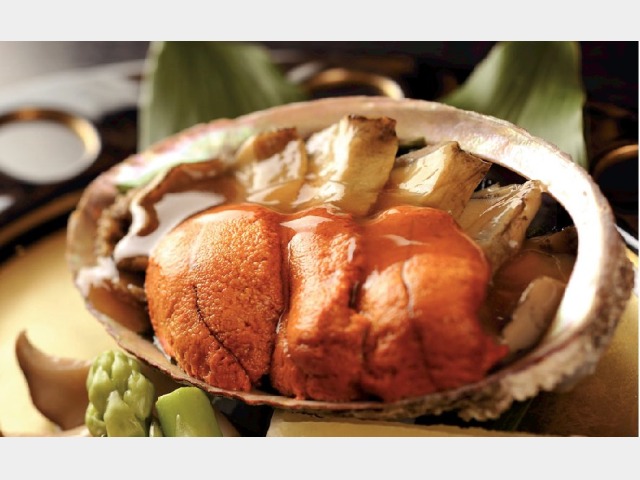 夕食イメージ(鮑のステーキ雲丹添え)