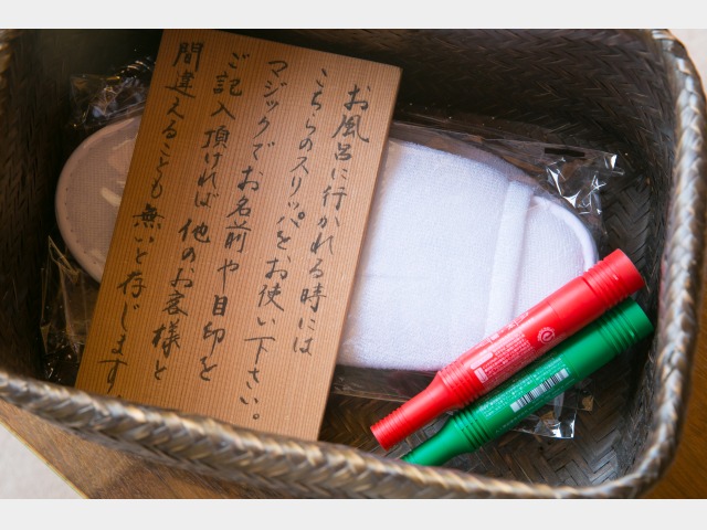 【アメニティ】 *タオル地のお風呂上り用スリッパ。ご自分のスリッパへ目印をつけるマジックもご用意。