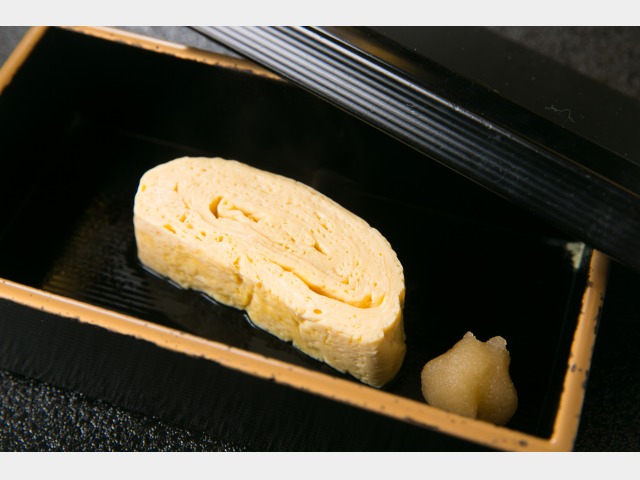 【ご朝食一例】 *日本伝統料理の代表格、特製だし巻き卵。ふきやのお出汁で手をかけたひと品です。
