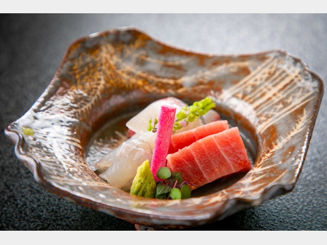 【ご朝食一例】 *さっぱりとした口当たりのお造り。湯河原の海の幸は、かの文豪も愛したことでしょう。