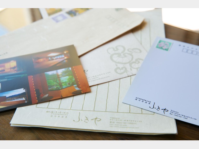 【アメニティ】 *レターセット 切手が貼られたはがきや封筒をご用意しております