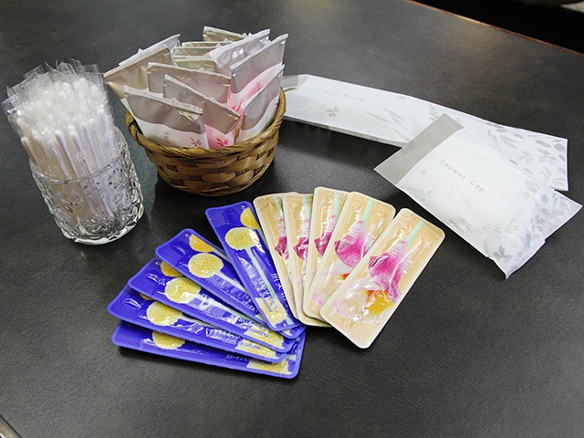 プロントにて綿棒、ヘアブラシ、メイク落とし、洗顔料、シャワーキャップ、ヘアゴムをご用意しております