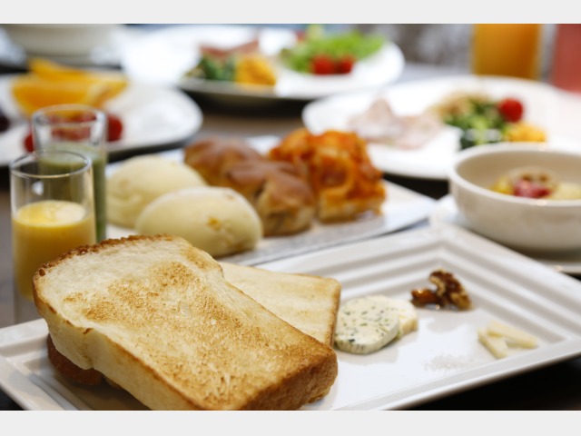 朝食イメージ/土地の恵みを活かした「しあわせの朝食パン」や、毎日届く朝採れの卵のたまごかけご飯もおススメです。