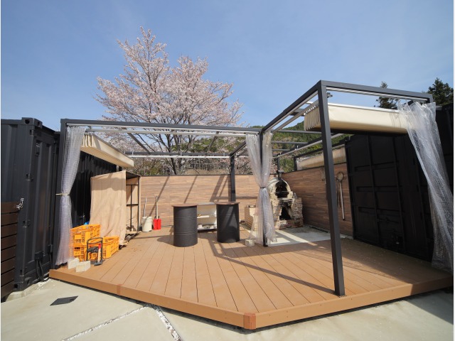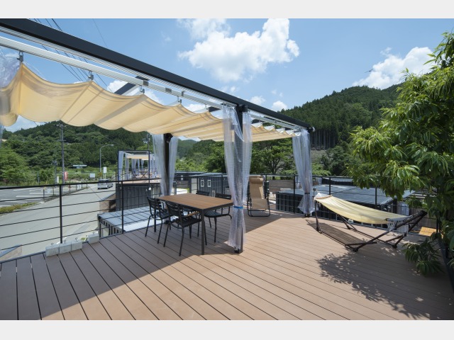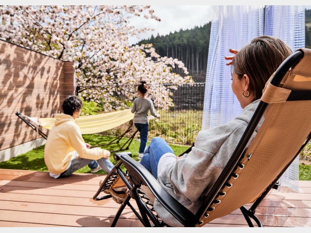 ファミリールーム_ウッドデッキ×こたつ(冬季)
