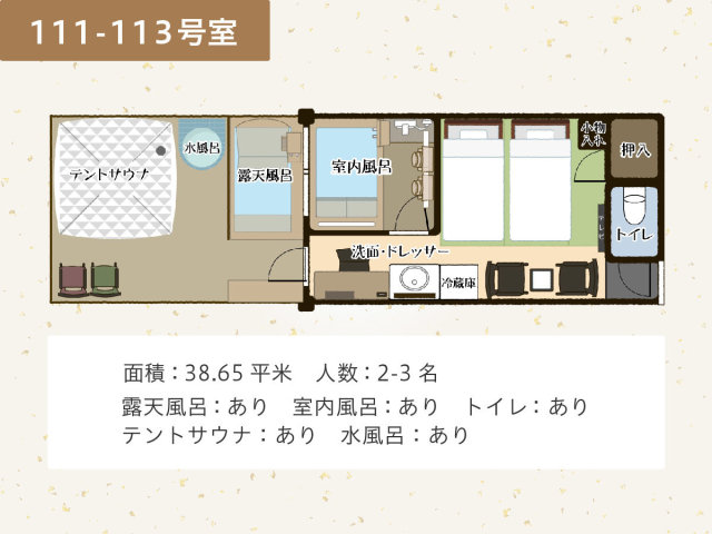 ■111-113号室■テントサウナ・水風呂・内風呂&露天風呂付き客室