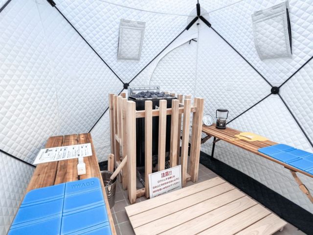 スイートグランピングではテントサウナでロウリュや熱波を体験できます