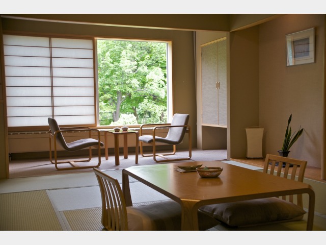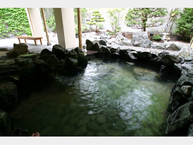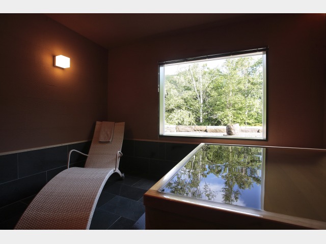定山渓の森の緑を望む貸切風呂。