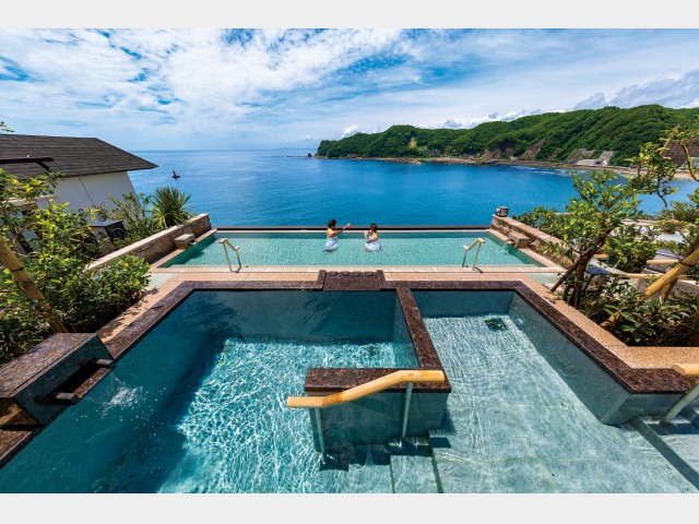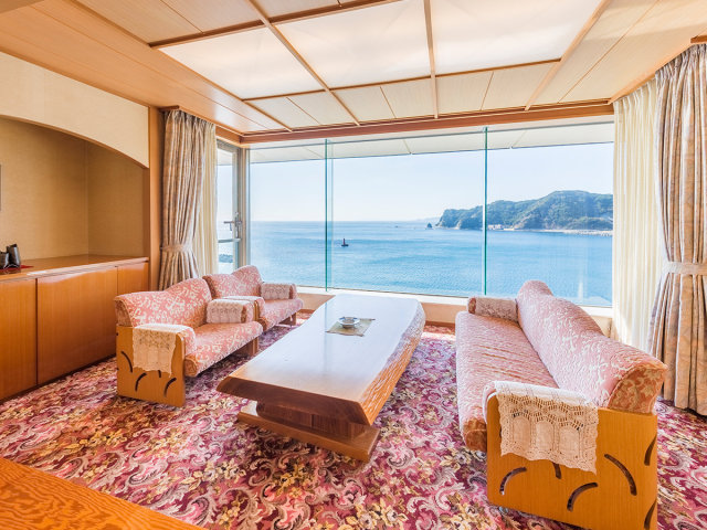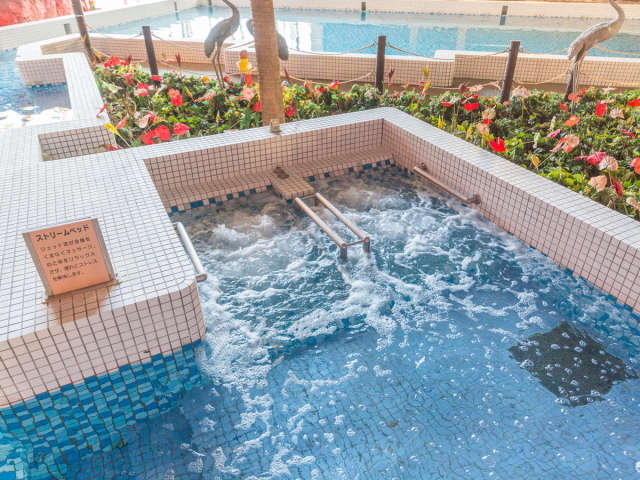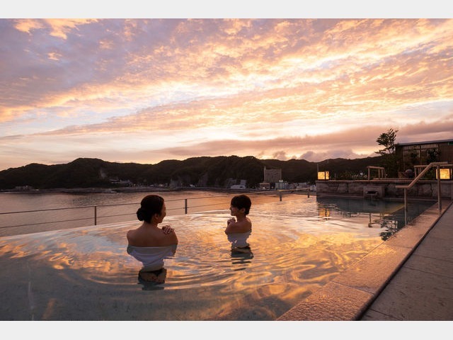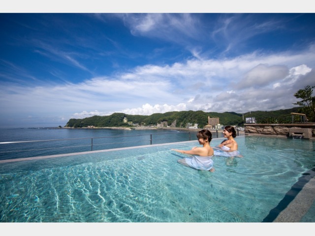 洋上35mの最上階に設けた大展望風呂と露天風呂は全長150m広さ千畳敷です。健康と美容に楽しみながら風呂三昧。又、屋内型スパでは南国の花や椰子に彩られた常夏ウォーターパラダイスをお楽しみ頂けます。客室からは太平洋を一望出来ます。