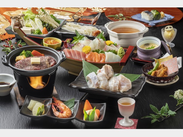 熊野牛陶板焼きとクエすき会席(冬季限定)