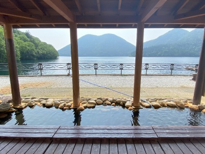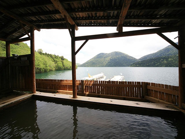 - 湖畔を渡る風が肌に心地良い源泉100%の露天風呂