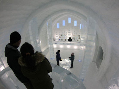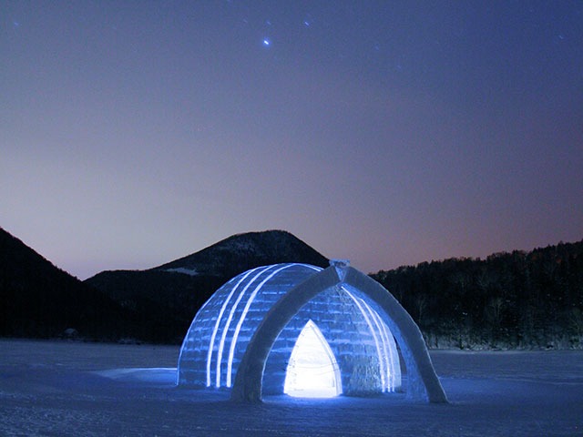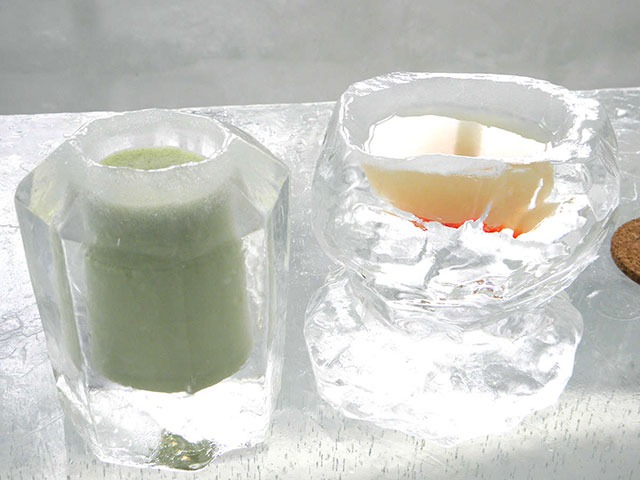 - 【しかりべつ湖コタン】透明度の高い美しい湖から切り出した透明な氷で作られるアイスバー