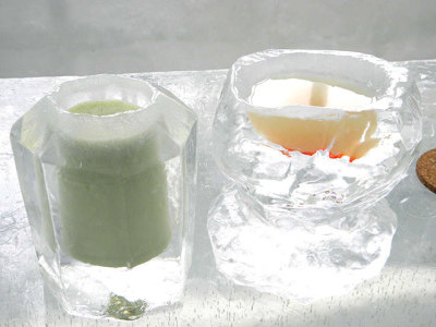 - 透明度の高い美しい湖から切り出した透明な氷で作られるアイスバー