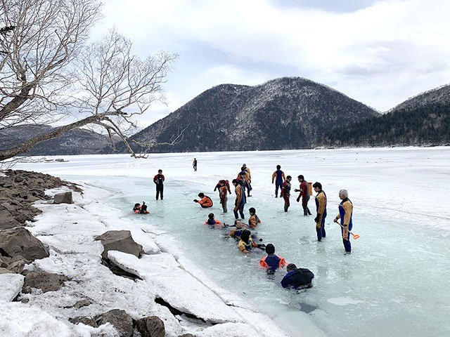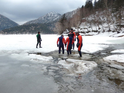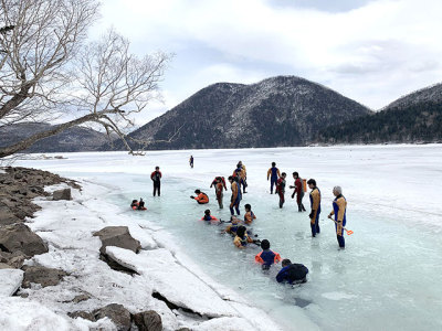 - 【融氷ウォーク】氷水でも冷たくないドライスーツを着て湖散策へ。融氷期ならではの体験を楽しもう!