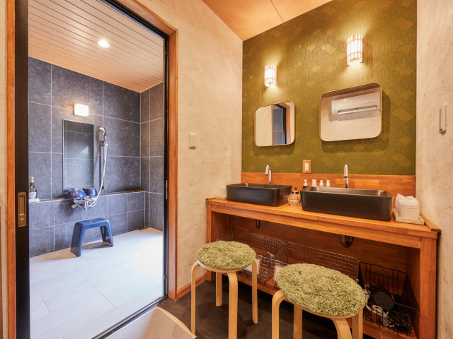 - ペットと泊まれるお部屋もご用意しています。ワンちゃんも家族。皆さまで特別な時間をお過ごしください。
