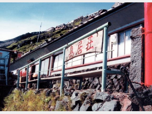 赤い鳥居が目印。客室から御来光が拝めます。河口湖、山中湖、相模湾、北アルプス連峰、南アルプス連峰、三ツ峠などの眺望、夜景。7月1日から9月上旬まで営業。標高2,900メートルに位置。