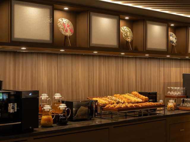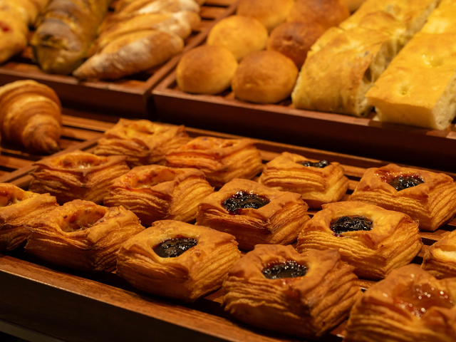 - ラウンジではくつろぎ時間のおともとして焼きたてのパンやデニッシュをご用意しております。*無料