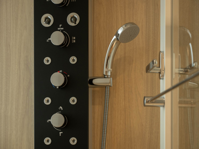 - オーバーヘッドシャワー付のシャワーブースボディシャワーのミストで身体の芯から全身を温めます
