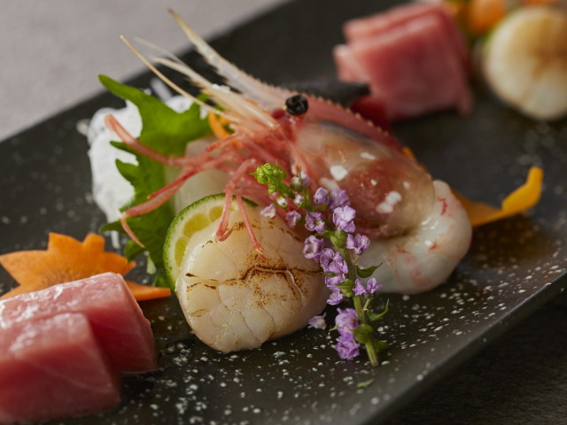 - 【特別会席】冬(2025年12月~2026年2月) 造里 炙り河豚の薄造り、他盛り合わせ