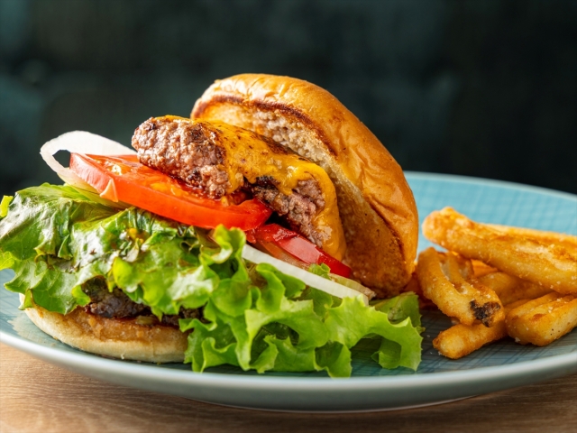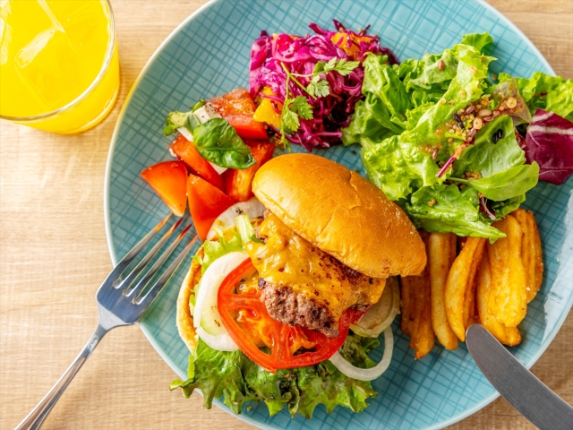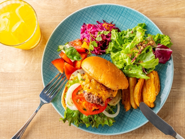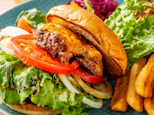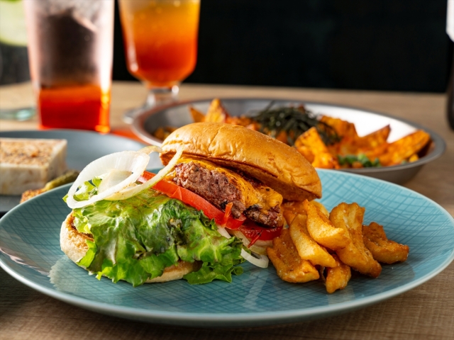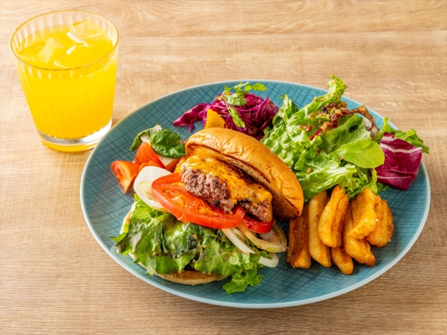 - 【カフェ】メニュー一例:九州産牛プレミアムバーガー