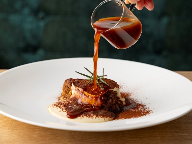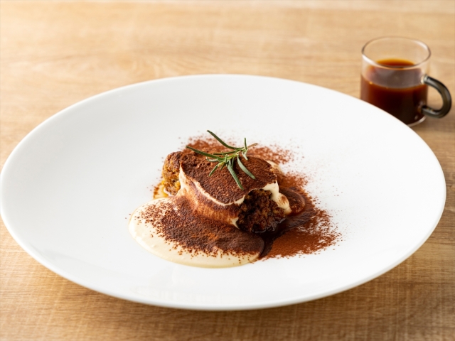 - 【ディナー】メニュー一例:ゲイシャコーヒーの華やかな香りが広がる、香り高い大人の上質なティラミス