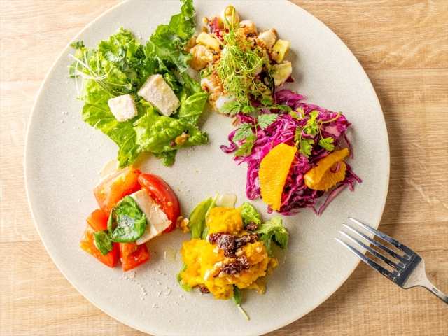- 【ブレックファースト】メニュー一例:素材の旨みを引き出した、彩り豊かなサラダビュッフェからのセレクション