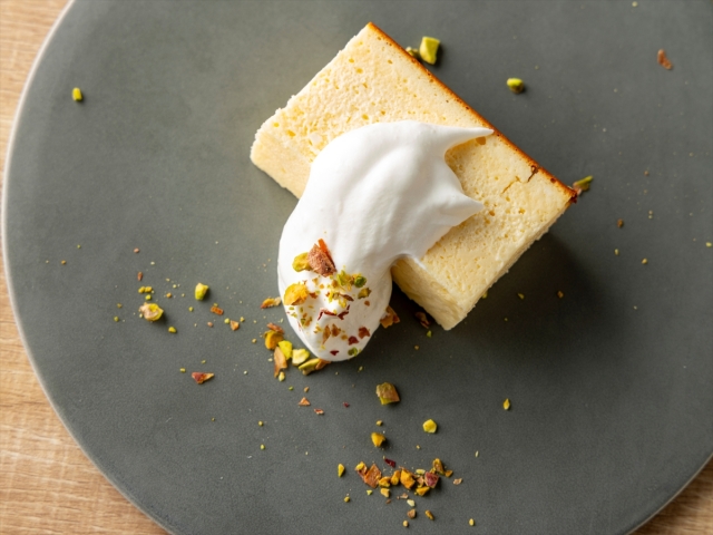 - 【ブレックファースト】メニュー一例:福岡県産生乳のコクを閉じ込めた、濃厚なバスクチーズケーキ