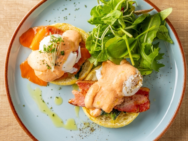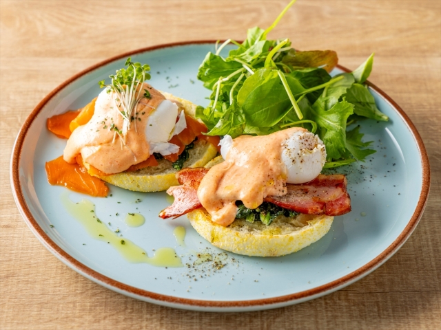 - 【ランチ】メニュー一例:プレミアムエッグベネディクト 博多明太ソース