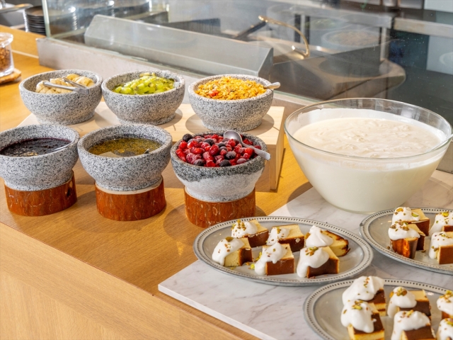 - 【ブレックファースト】メニュー一例:ヨーグルトやコンフィチュールのヘルシー&フレッシュなデザート
