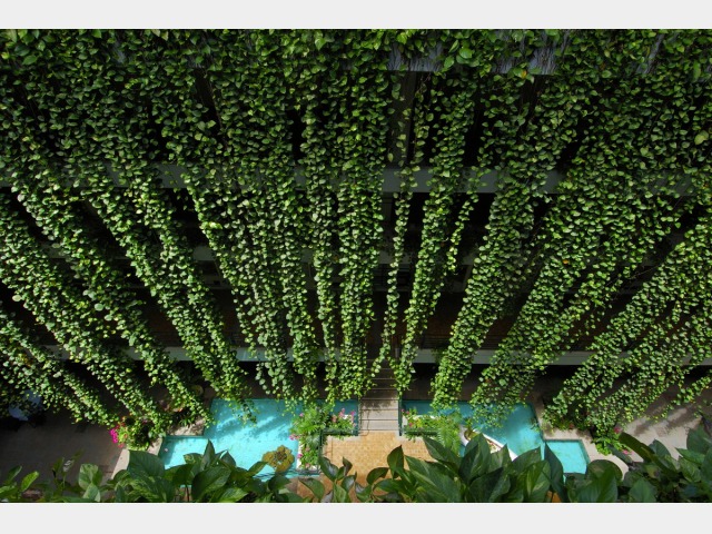 - 館内イメージ 吹き抜けの天井から垂れ下がる幾本の緑のポトス