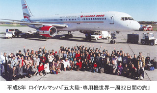 専用チャーター航空機で行く世界一周の旅。 1996年(平成8年)マッハ発売25周年を記念した企画「五大陸・専用機世界一周32日間の旅」は、お一人様390万 円の旅行費ながら即日完売。ツアー・オブ・ザ・イヤー’96グランプリ受賞の快挙を成し遂げました。カナダ・ナイアガラの滝に始まり、メキシコ・マヤ文 明、ブラジル・アマゾン川、ケニア・サファリ、インド洋の真珠とうたわれるモルディブ、オーストラリア・エアーズロックなどなど、ダイナミックな世界一周 は社会的にも大反響を呼び、’97年4月に第二弾を実施しました。 ![]() |