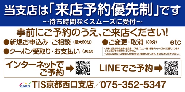 日本旅行トップ > 支店・店舗一覧 > 店頭・予約センター一覧 > TiS京都西口支店