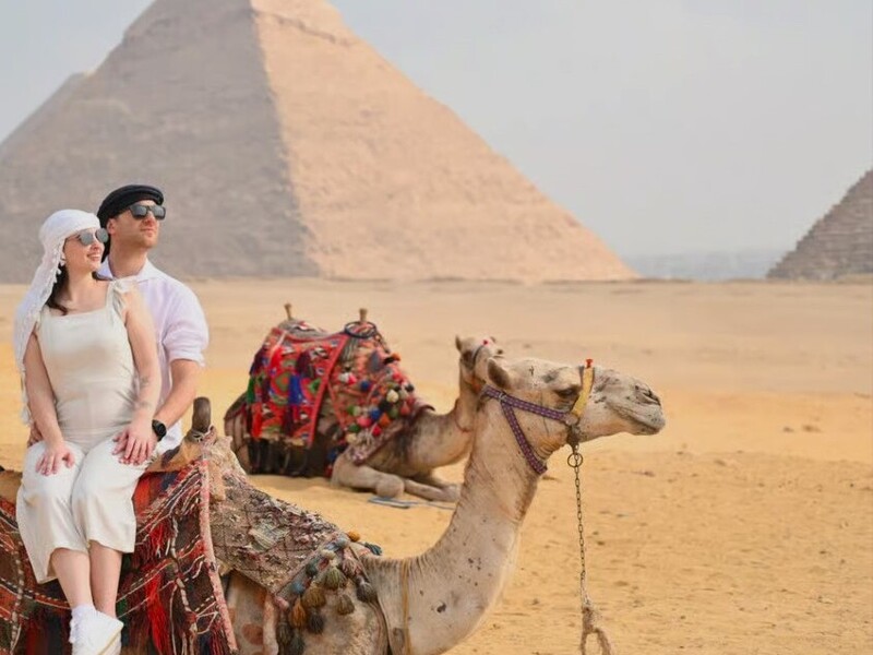 3大ピラミッドを望むエリアでラクダ乗り体験と記念撮影