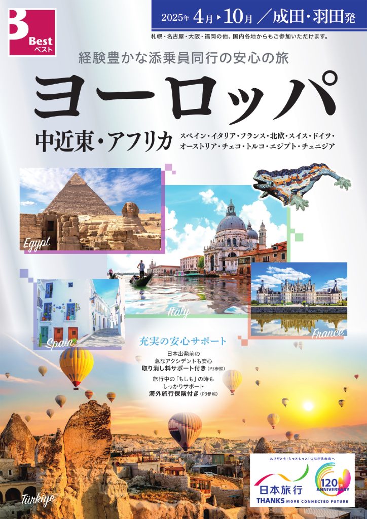 日本旅行トップ> 海外ツアー> 添乗員同行海外ツアー> お知らせ> 【東京発】2025年4~10月出発 添乗員同行ヨーロッパ・中近東・アフリカのツアーを発売しました!