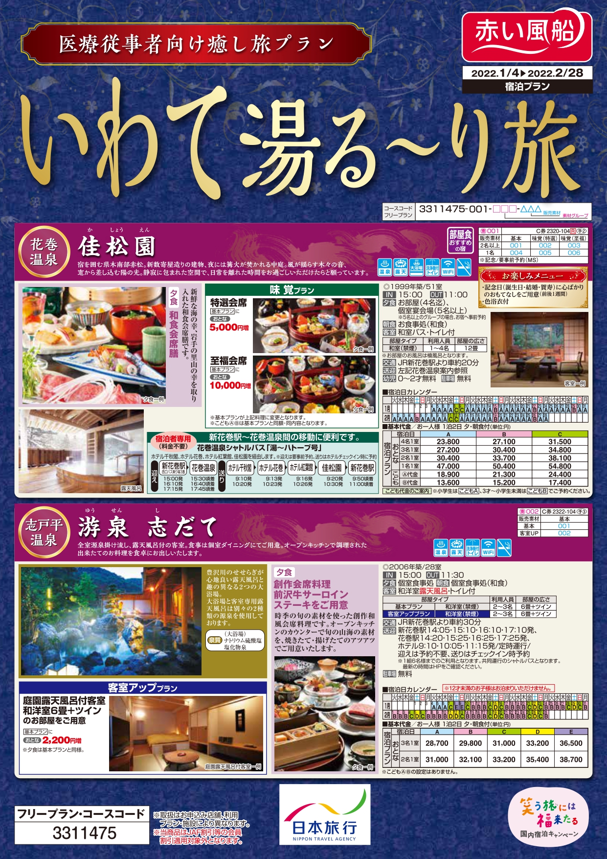 岩手県内医療従事者向け癒し旅プラン発売中!