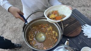 昨日の炊事の経験と2日間で深めた仲・連携で最高に美味しいカレーライスが完成しました。