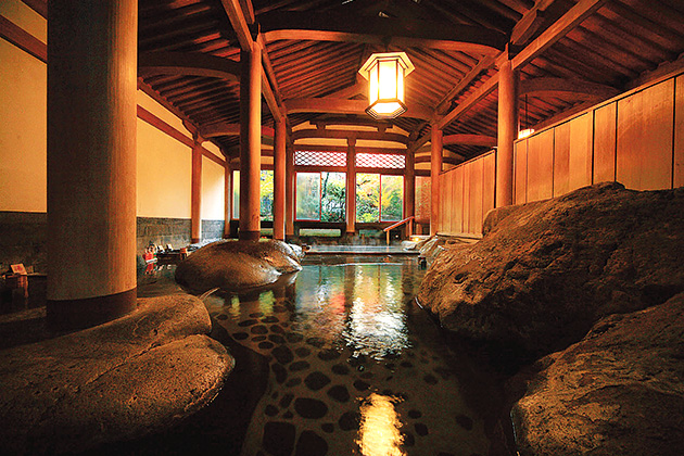 旅館のサービスで最も大きなメリットは、温泉などのお風呂設備が充実していることです。温かい温泉で身体を休めることができます。旅館は到着すれば食事からお風呂まですべて館内で完結するため、部屋でゆったりおくつろぎいただけます。