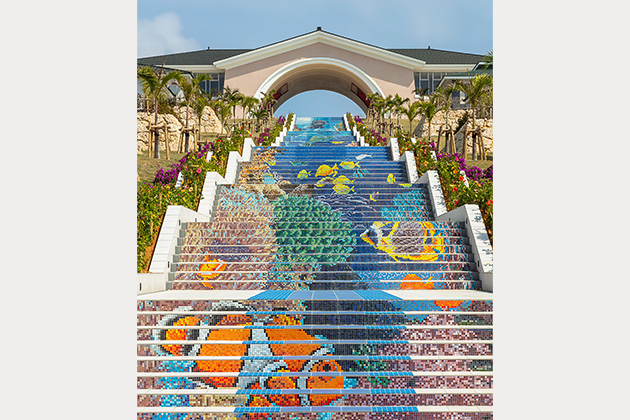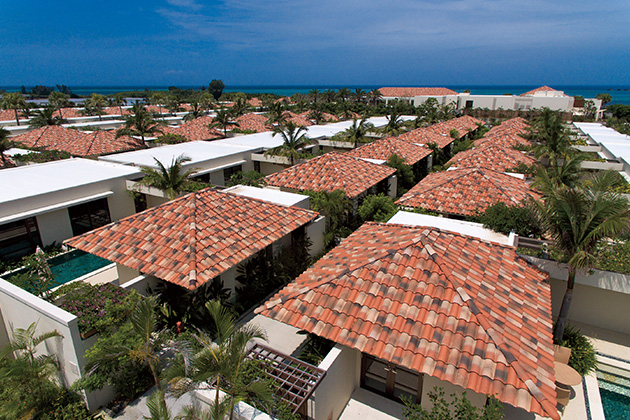 「ザ・リッツ・カールトン沖縄」は、琉球のシンボルとなっている首里城の赤瓦と白い城壁、また古来より聖地とされ崇められてきた水の湧き出る場所をモチーフとしています。
