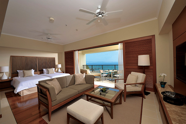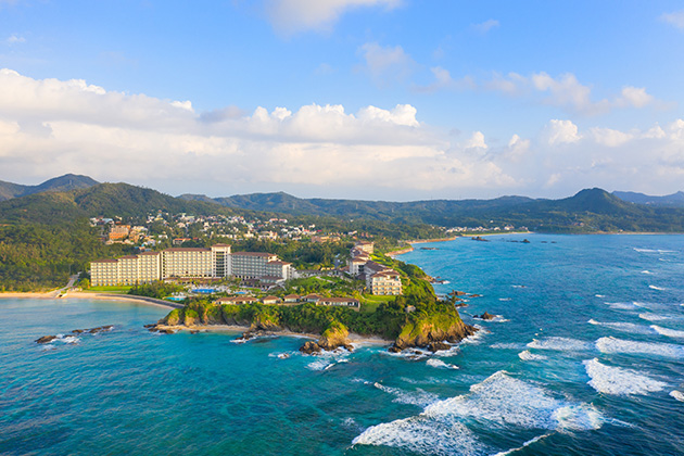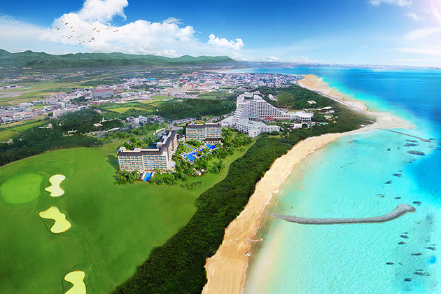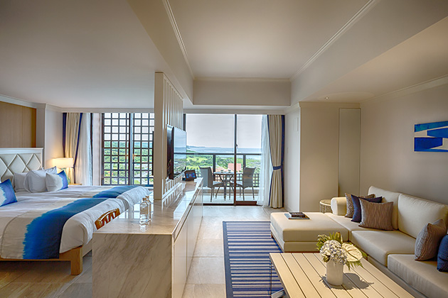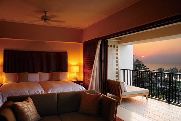 エメラルドグリーンの海が望める絶好のロケーションとアジアンテイストのオリジナルファニチャーに囲まれた全室デイベット付の客室、併設のゴルフ場等、充実したリゾートライフをお楽しみいただけます。